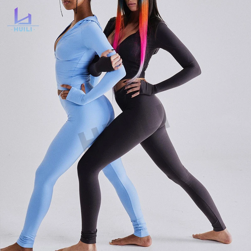 Huilil Custom Logo High Stretch Two Piece Fitness Leggings Set Women's Short Pants Workout Loungewear Skinny Outfits Custom Logo